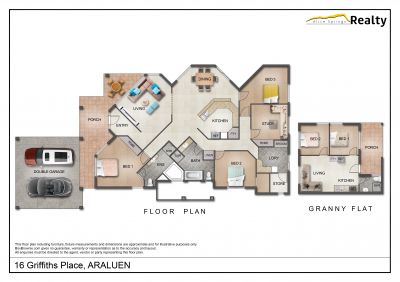 Step into the comfort and versatility of this spacious 3-bedroom, 2-bathroom home with an adaptable study that easily converts to a fourth bedroom, nestled in a tranquil Araluen setting. Perfect for families or multigenerational living, this residence includes a fully self-contained 2-bedroom, 1-bathroom granny flat-ideal for guests, extended family, or rental income. The main home features light-filled living areas, a modern kitchen, and an inviting outdoor space designed for relaxation and entertaining. With ample storage, a double carport, and split-system climate control, this property combines convenience and thoughtful design.