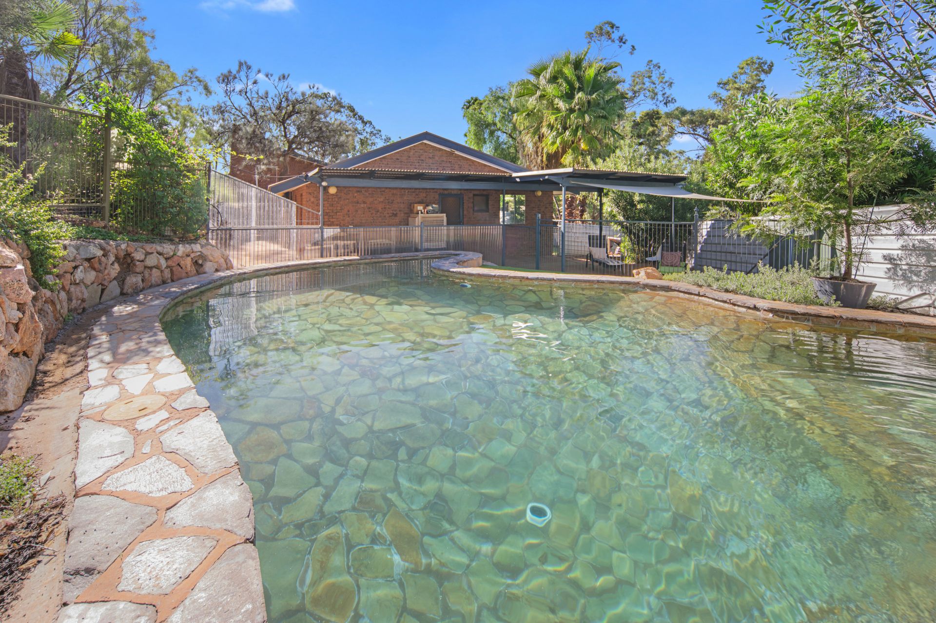 This home is designed for the Alice Springs climate, boasting three separate outdoor entertaining areas. The crown jewel is the stunning in-ground rock pool and spa, masterfully crafted with local Ross River slate to create an oasis that feels like a private resort.