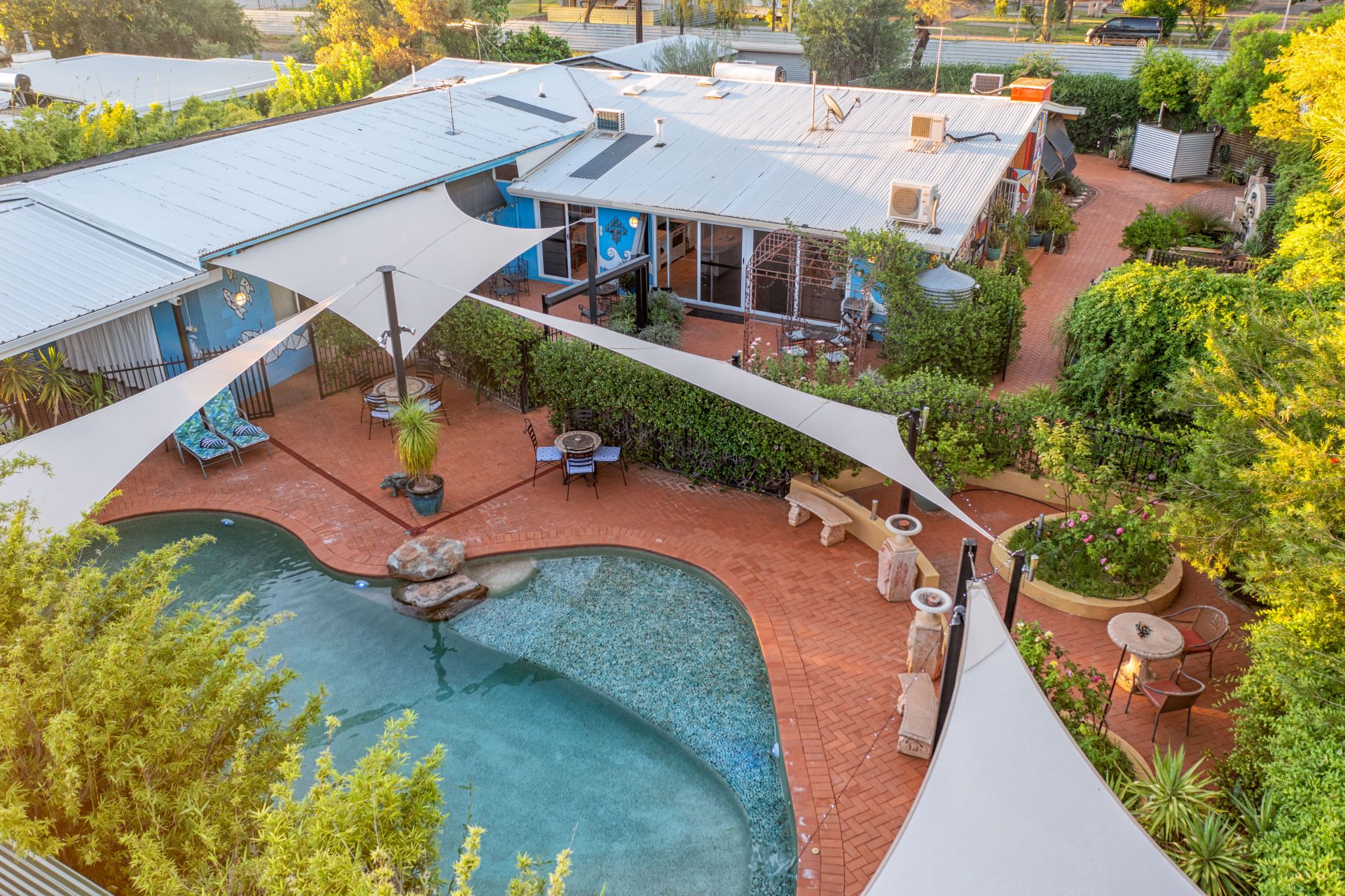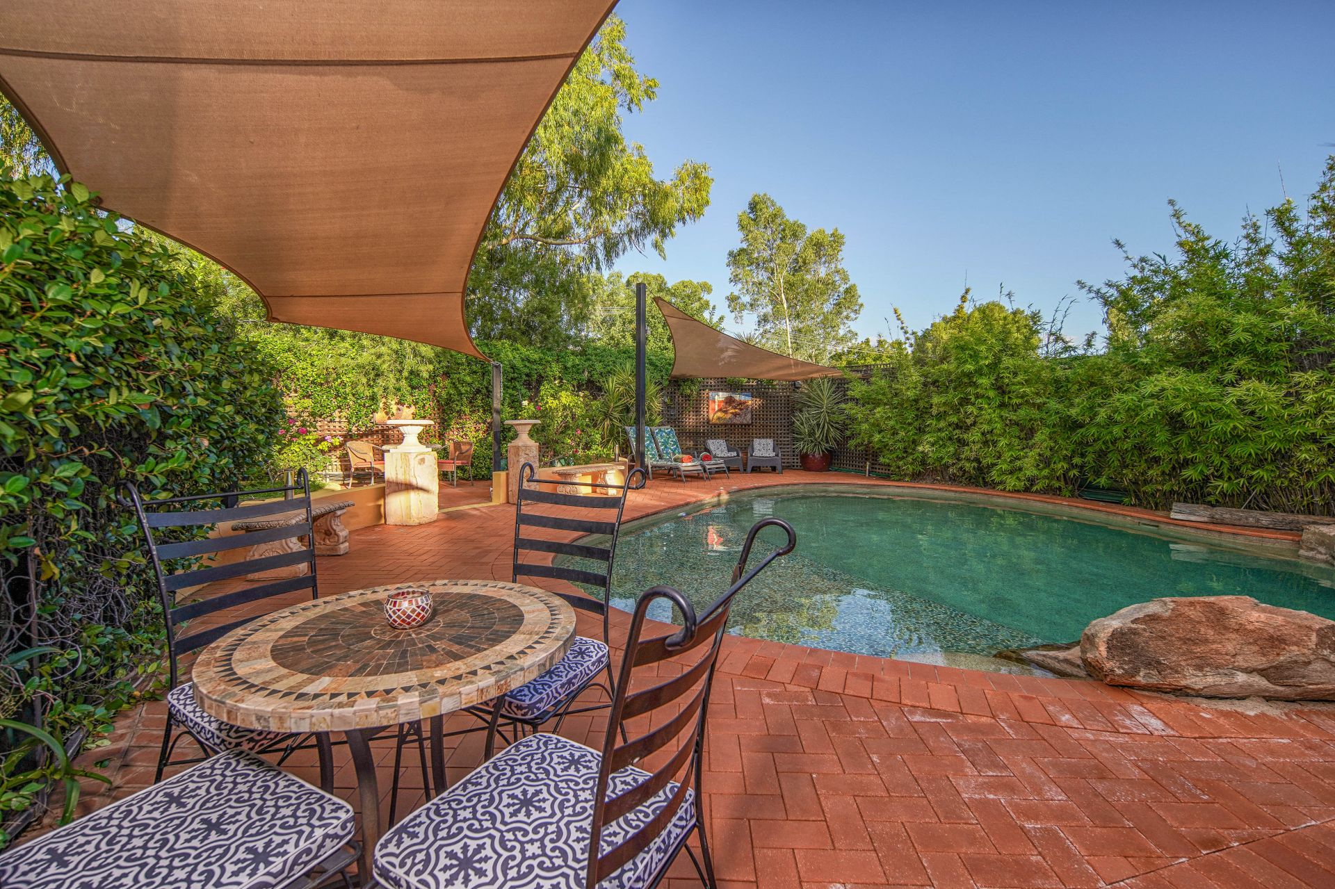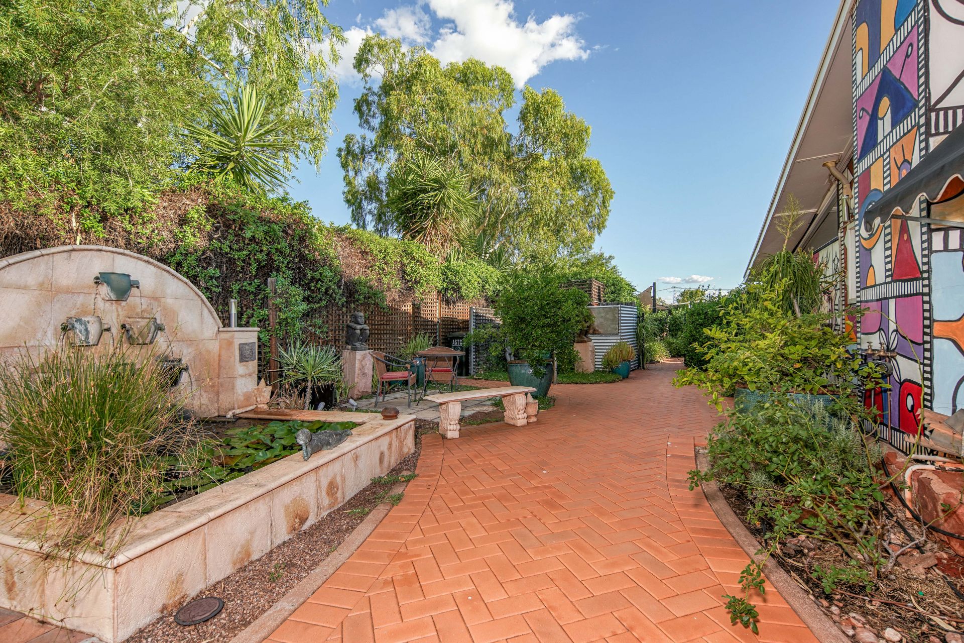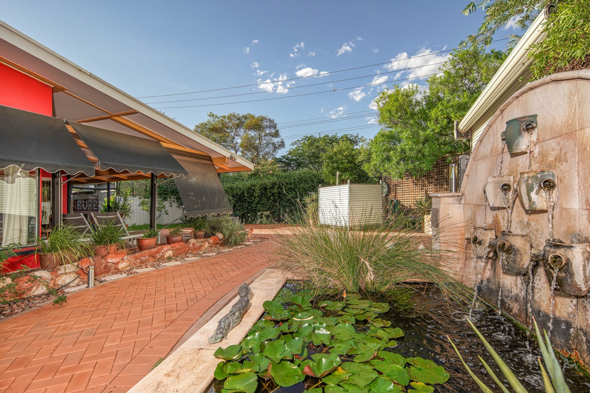 Multiple water features-including three additional trickling fountains-create a calming soundtrack that draws in native birdlife to the surrounding white gum trees, enhancing the property’s already tranquil atmosphere.