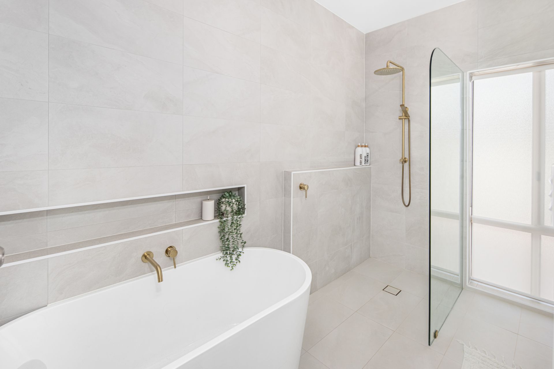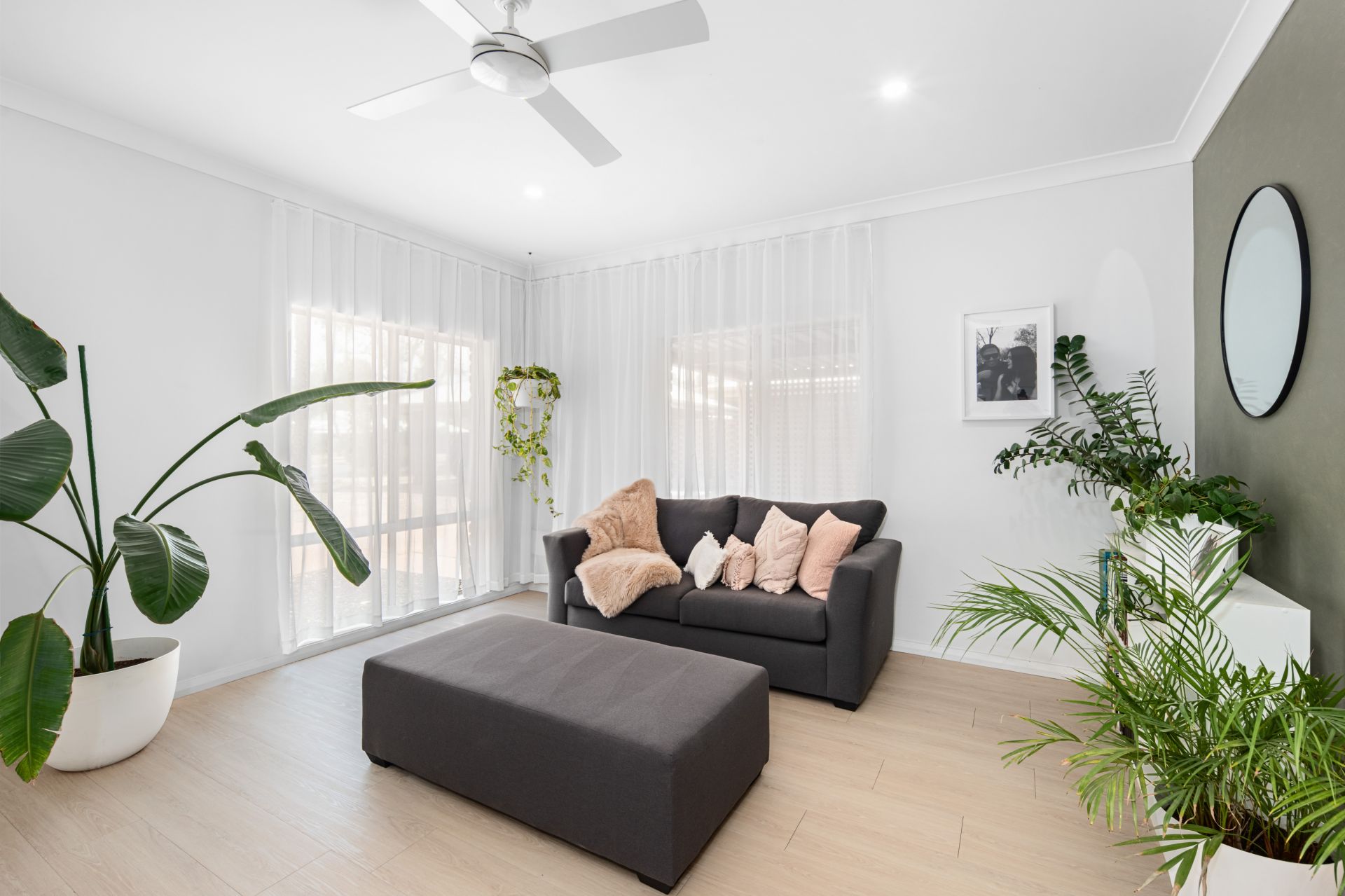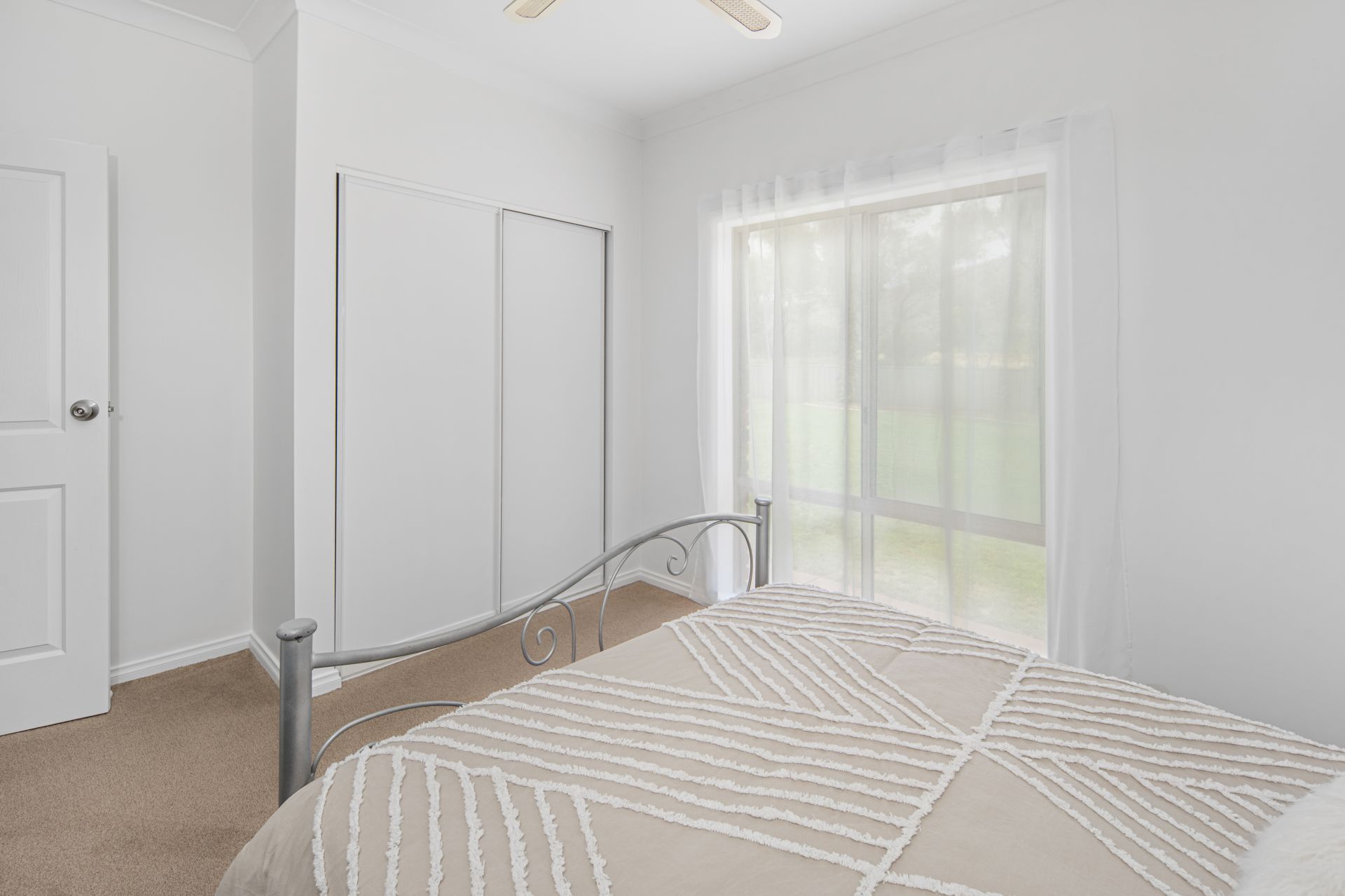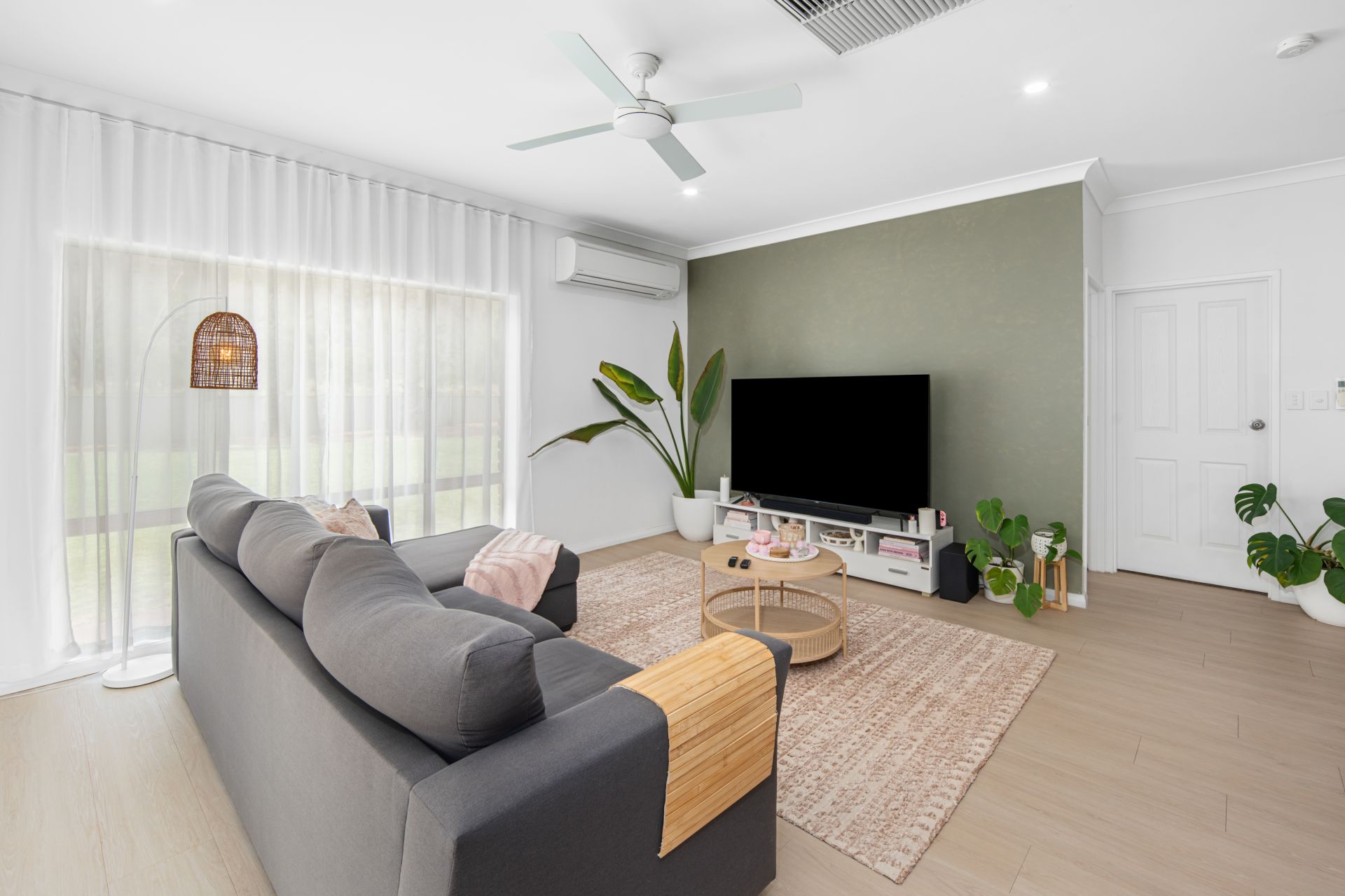 The master suite is a true retreat, featuring a walk-in robe and a modern ensuite. The remaining bedrooms are well-sized and filled with natural light, complementing the home’s airy, open feel. They are serviced by a full bathroom with floor-to-ceiling tiles and a separate bath from shower.