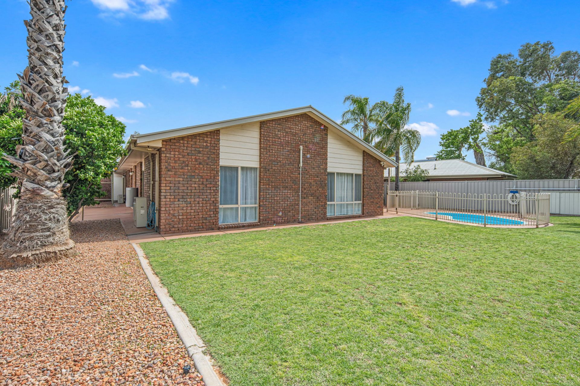 Step outside and you’ll be greeted by an expansive backyard with lush green lawns, offering plenty of space for children and pets to play safely. The sparkling in-ground pool and appealing outdoor entertaining area set the scene for summer gatherings, while the stunning backdrop of the MacDonnell Ranges completes the picture.