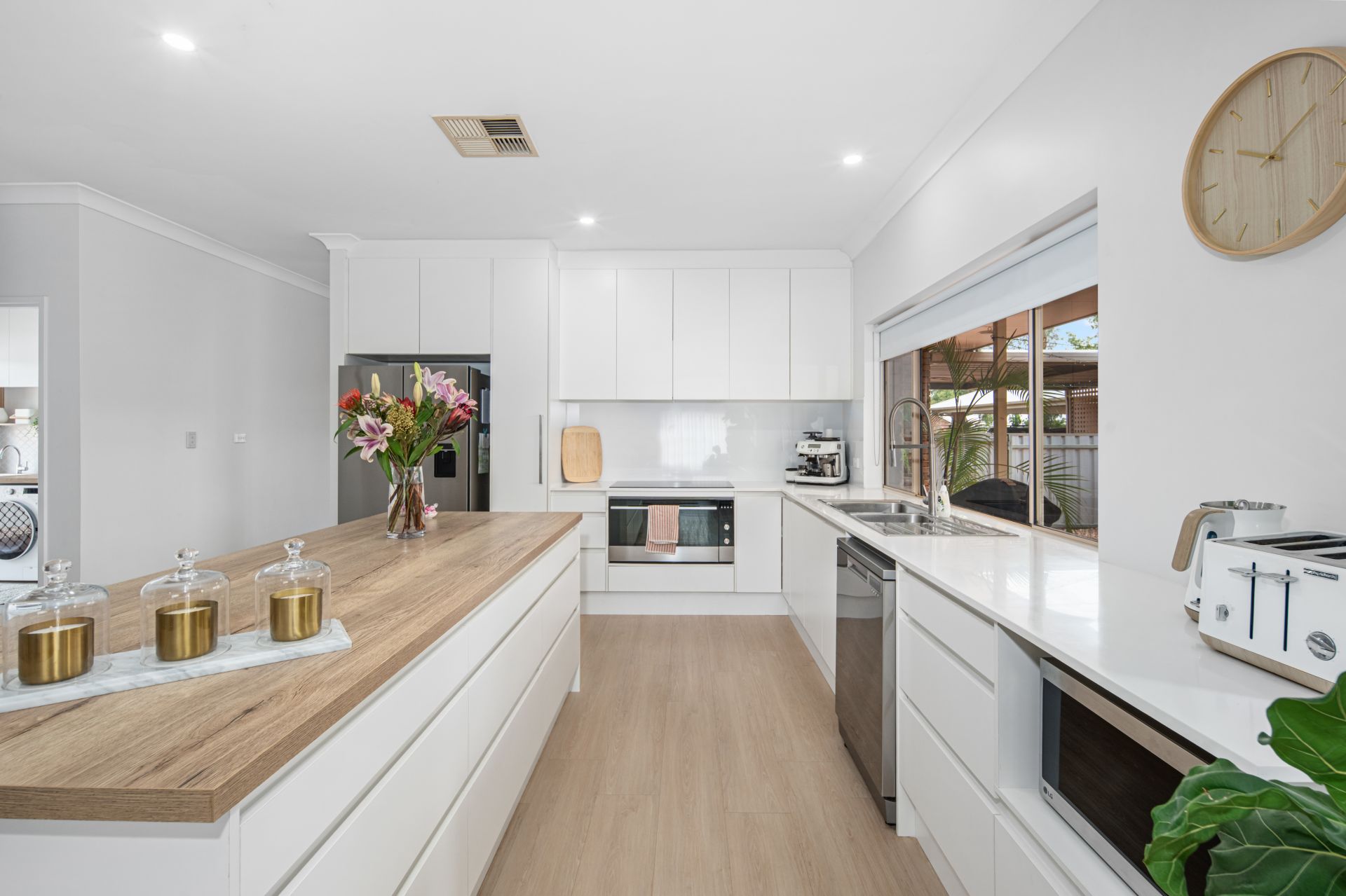 The open-plan layout centres around a stylish and functional kitchen, featuring abundant bench and cupboard space, an island bench, induction cooking, and a dishwasher-perfect for busy family life or entertaining friends. Two spacious living areas provide excellent flexibility, ensuring there’s room for everyone to relax or come together.