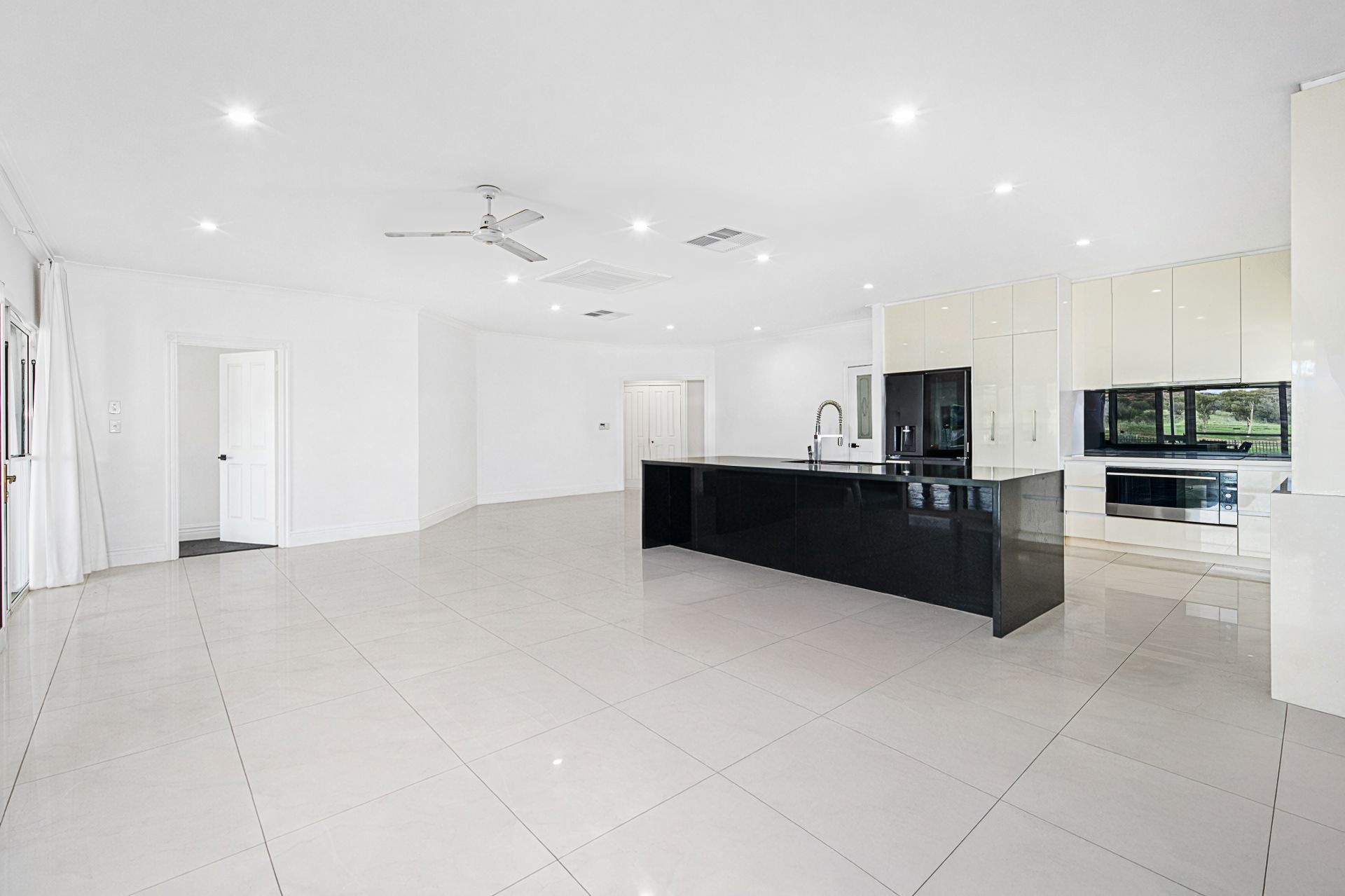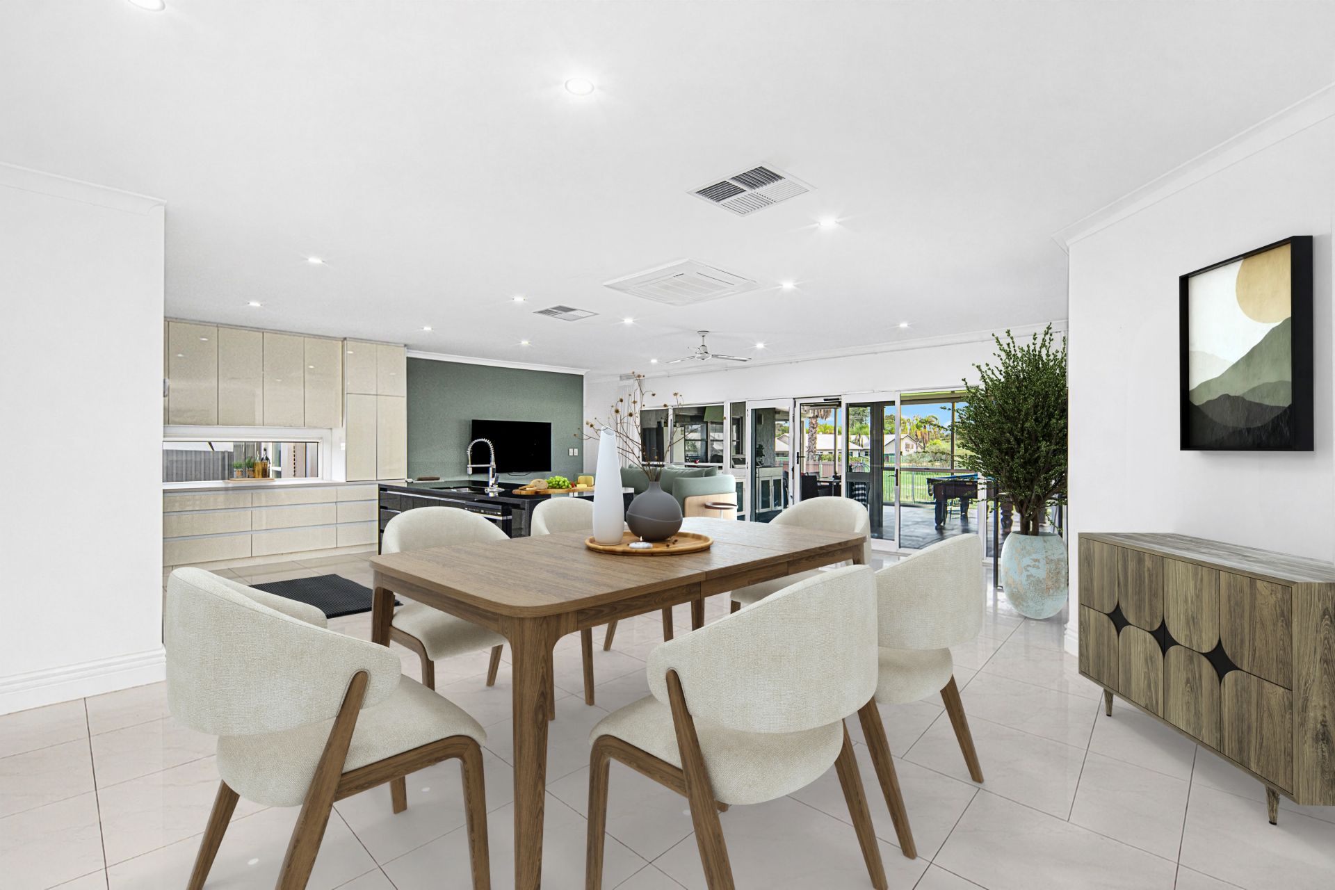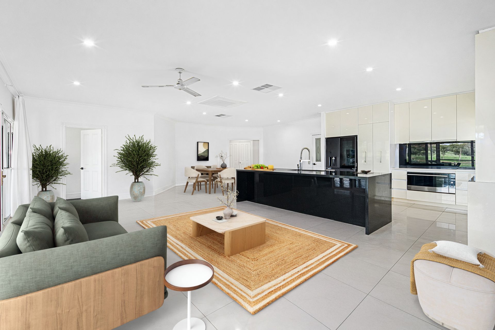 The rear of the home is where everyday living truly shines. A fully renovated kitchen forms the heart of the home and features all the modern conveniences expected in a property of this calibre. Seamlessly connected are the dining and informal living areas, finished with sleek tiling underfoot and designed for relaxed family living.