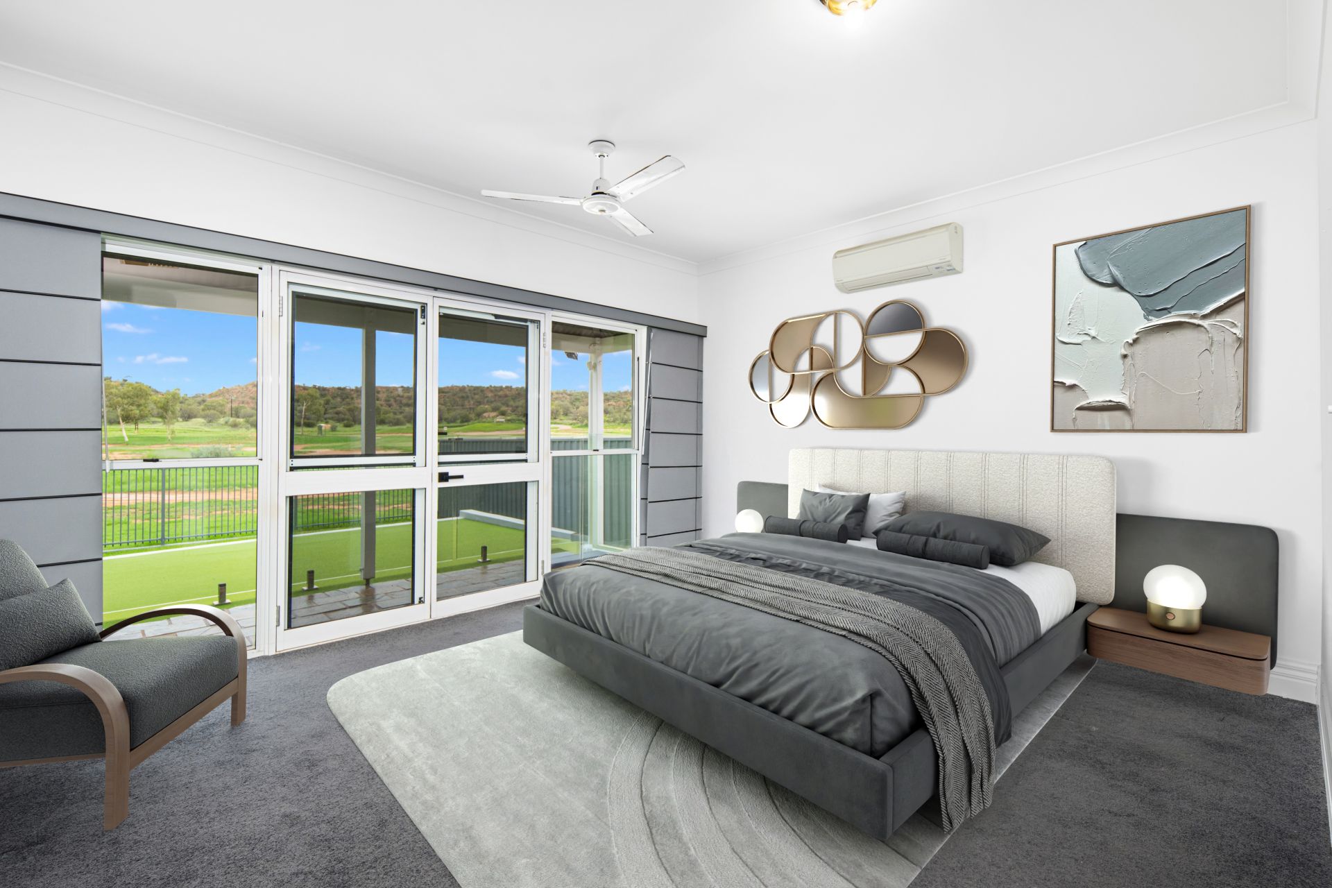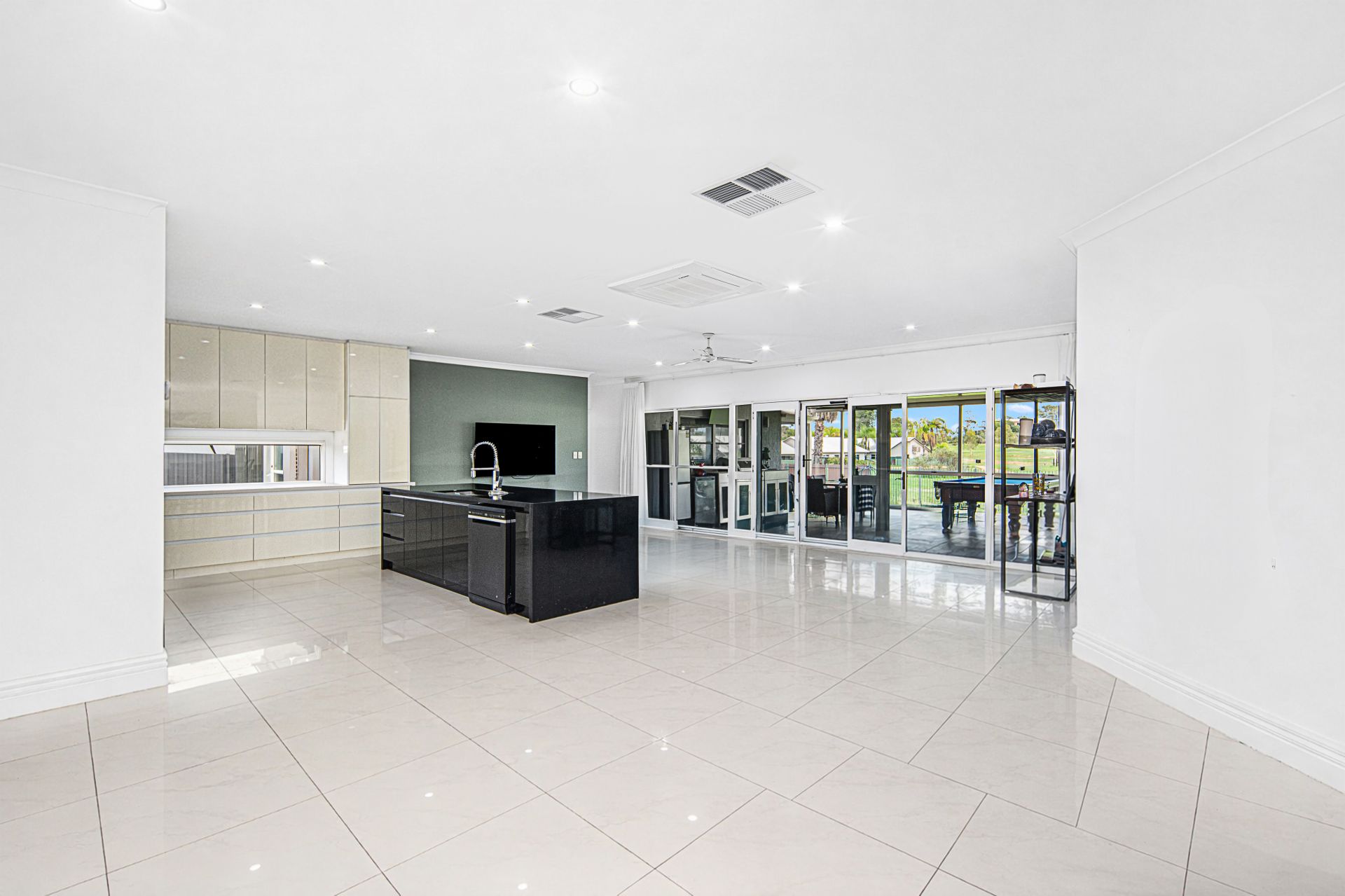 Additional features include an oversized double garage with extra off-street parking for two additional vehicles, along with comprehensive climate control throughout the home via reverse-cycle cassette air-conditioning, split systems, and evaporative cooling.