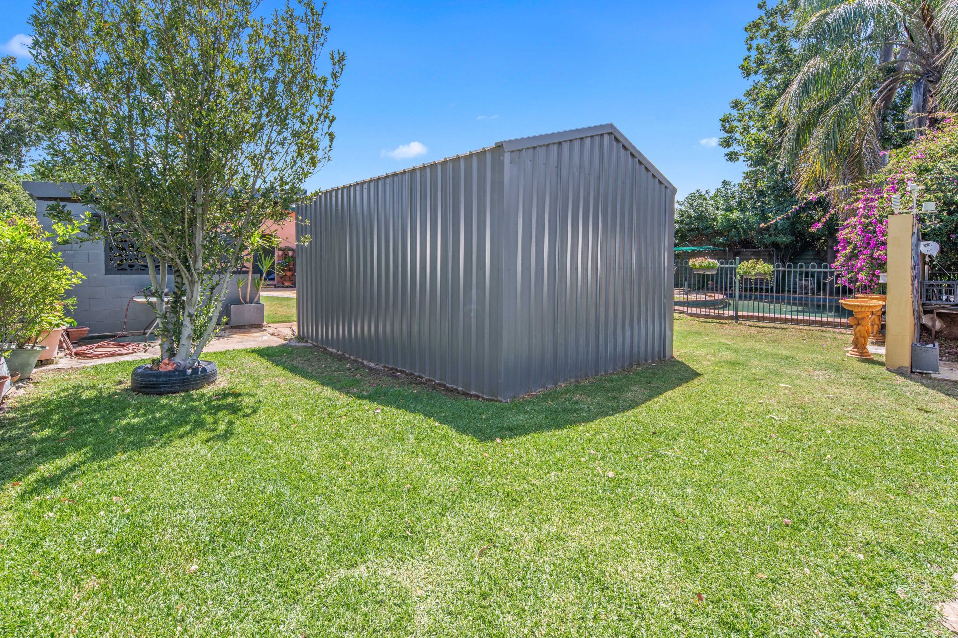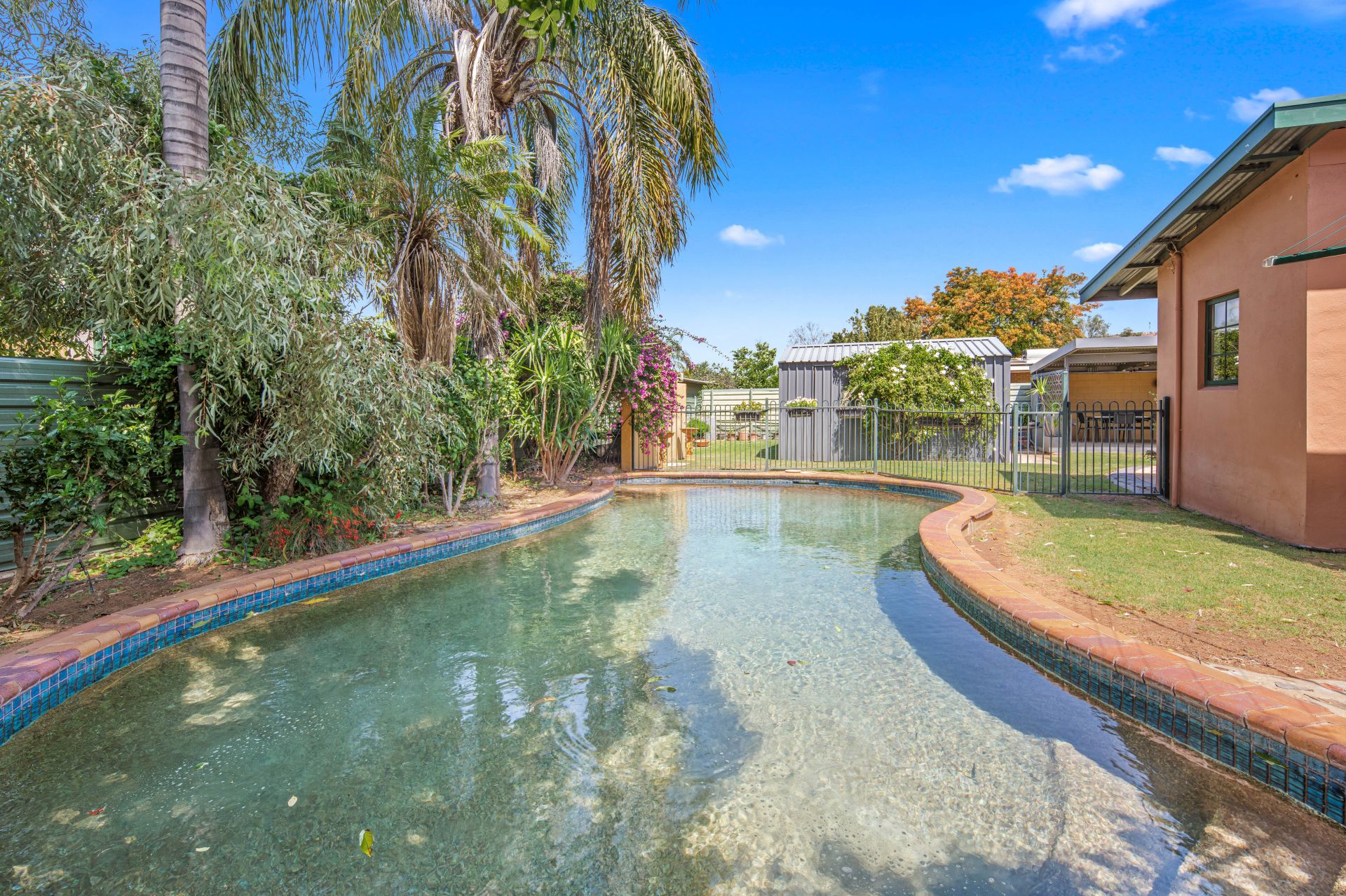 Saltwater swimming pool & large garden shed