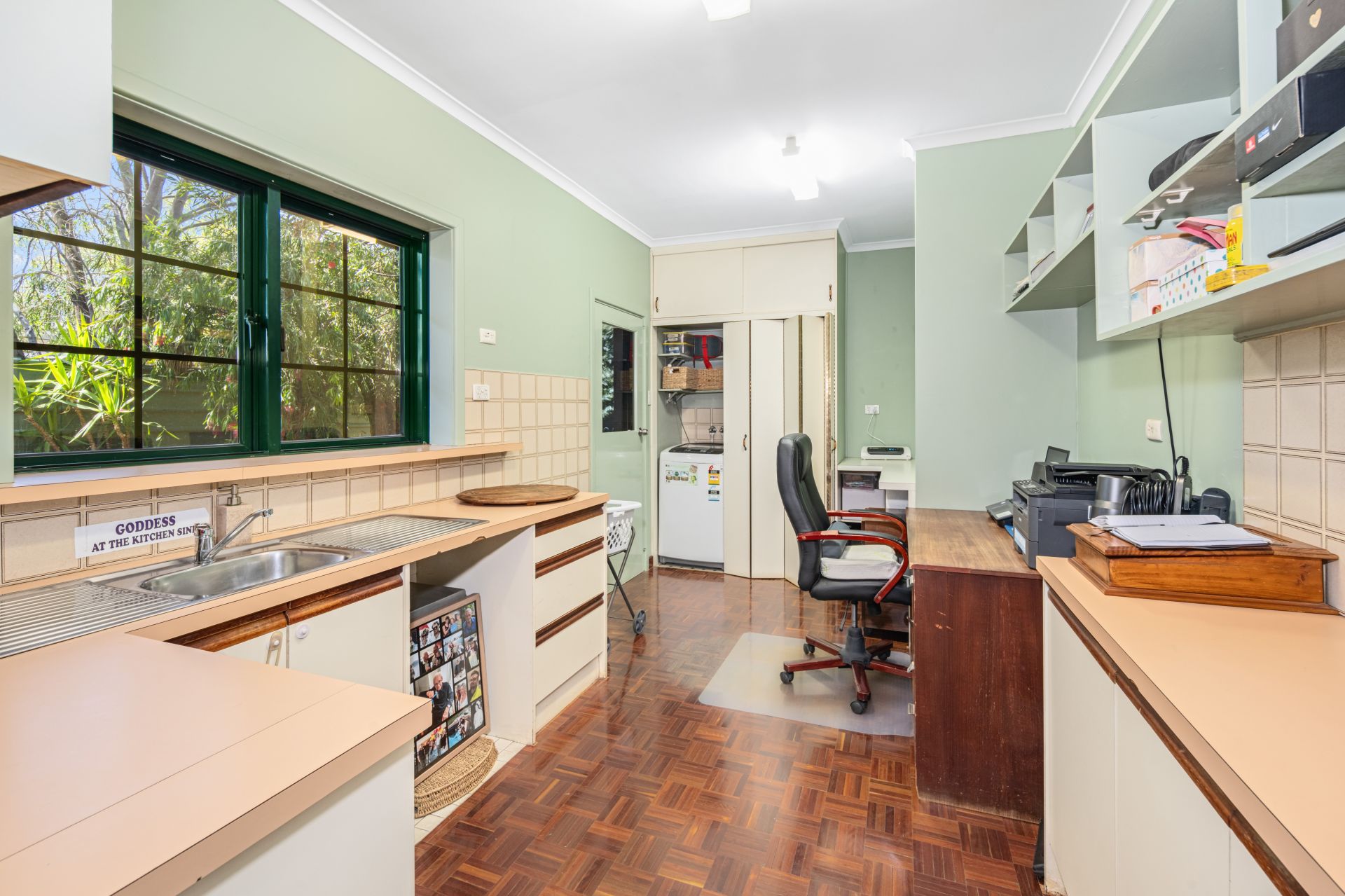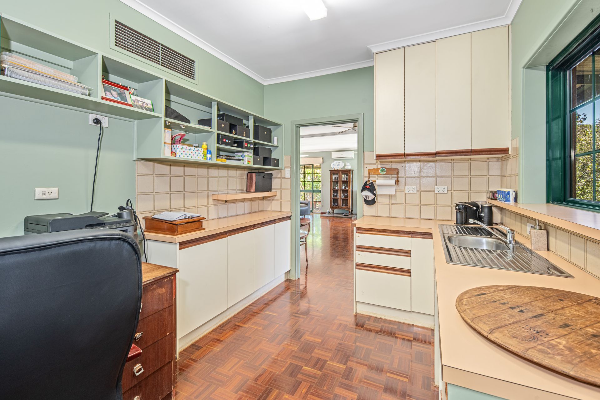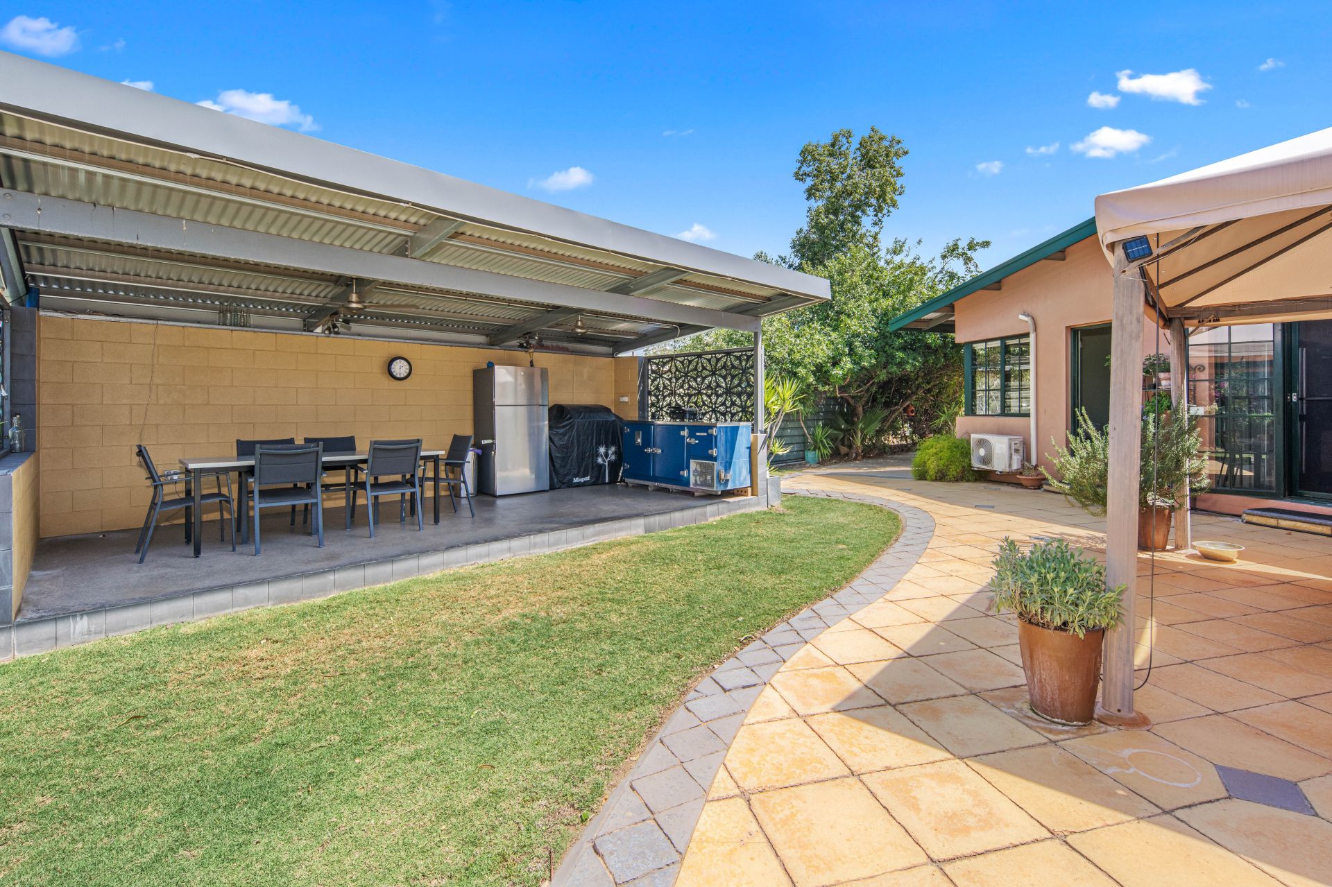 Practicality meets lifestyle with a well-appointed utility room that includes ample storage, an extra sink, office space, and a European laundry. Comfort is guaranteed all year round, thanks to split-system air conditioning and evaporative cooling throughout.