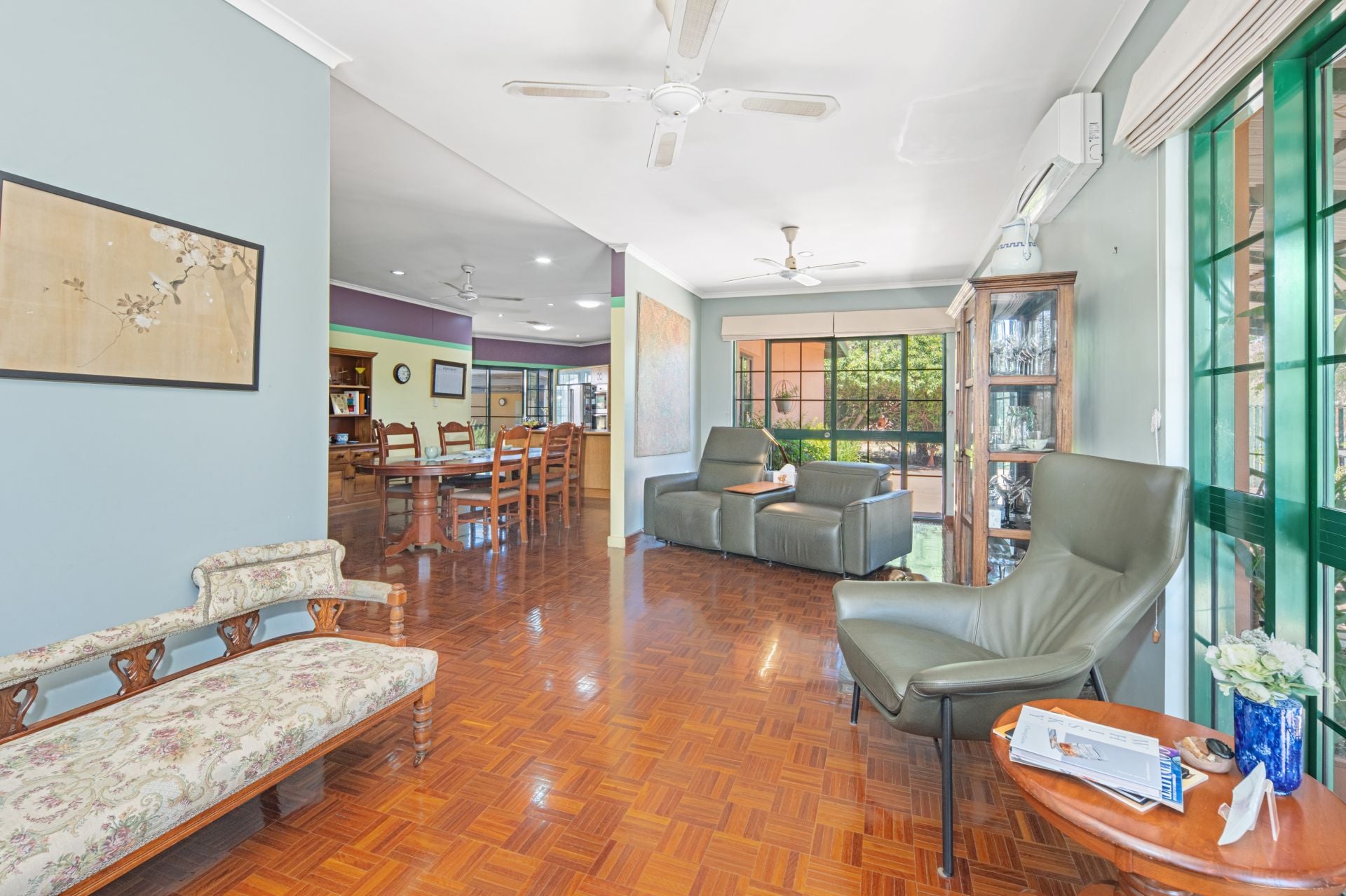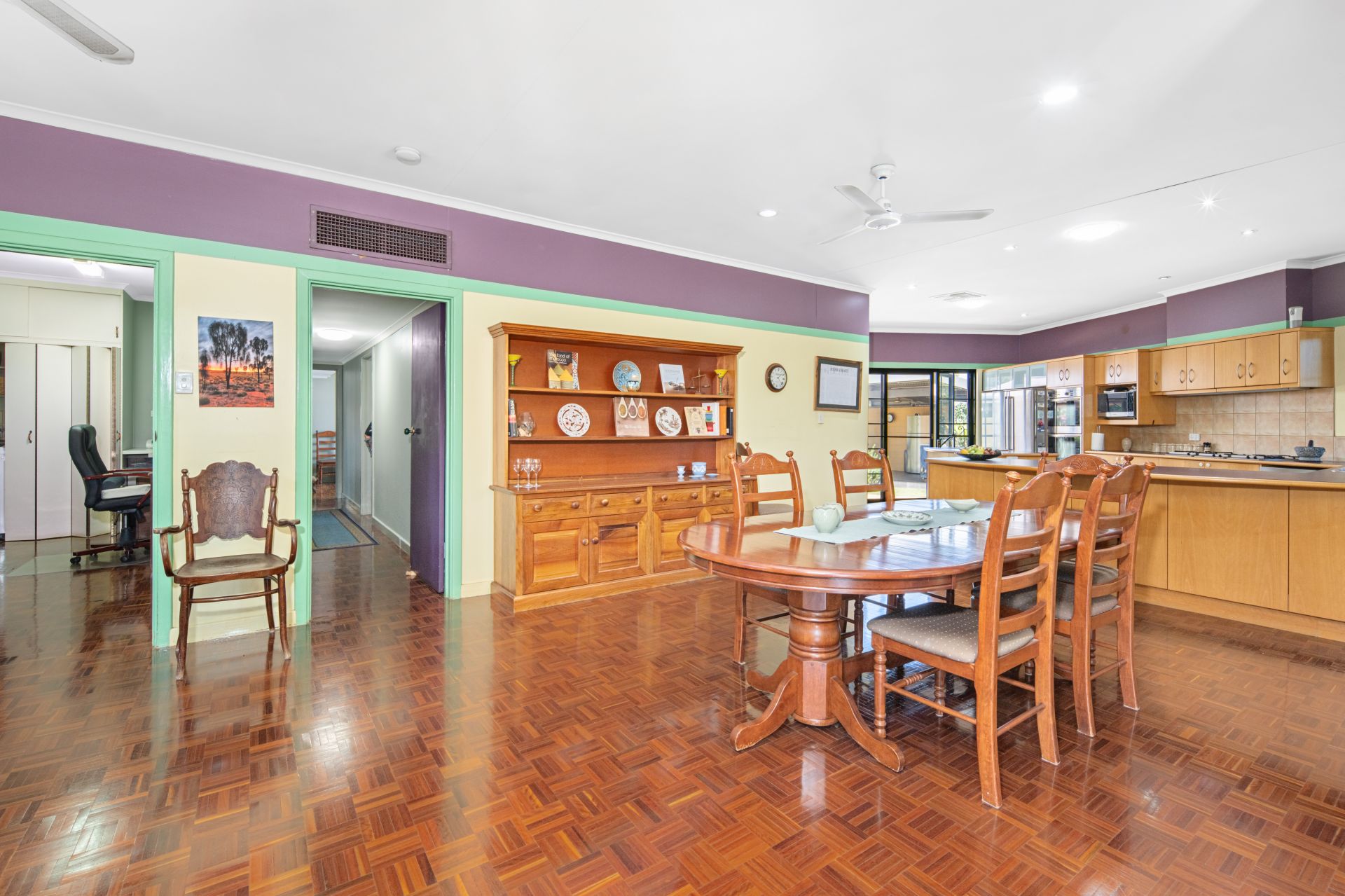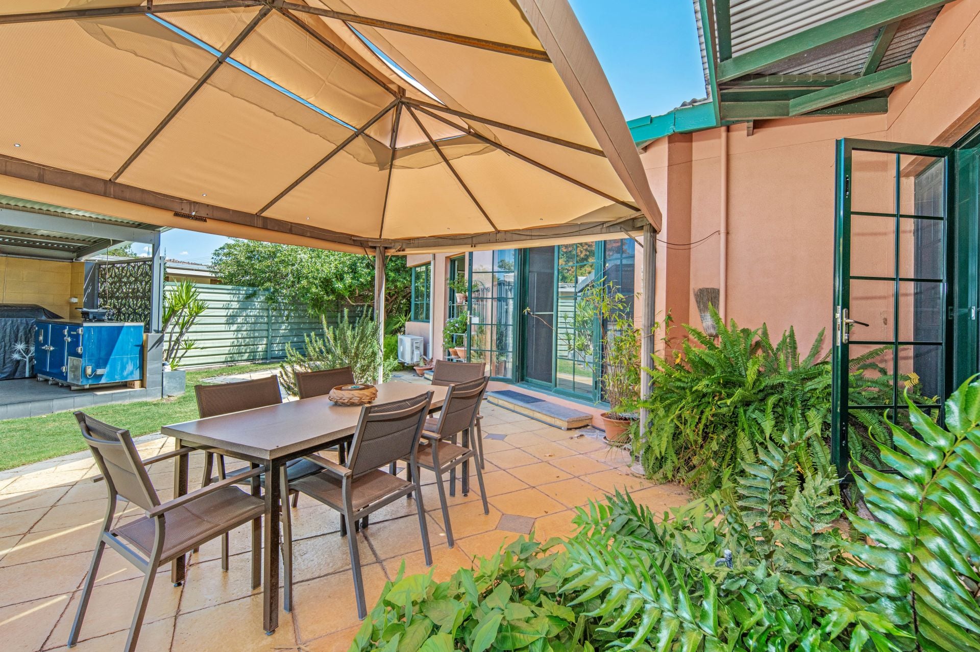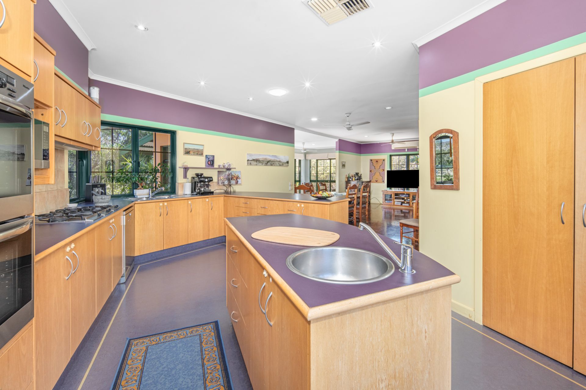 Practicality meets lifestyle with a well-appointed utility room that includes ample storage, an extra sink, office space, and a European laundry. Comfort is guaranteed all year round, thanks to split-system air conditioning and evaporative cooling throughout.