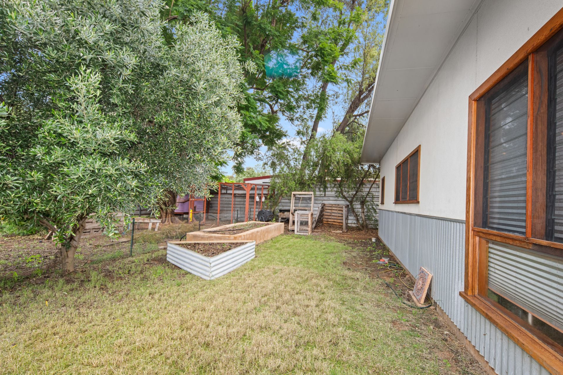 Sustainable Features: Raised vegetable and herb beds, a rainwater tank, and a wi-fi reticulated irrigation system set for efficiency.