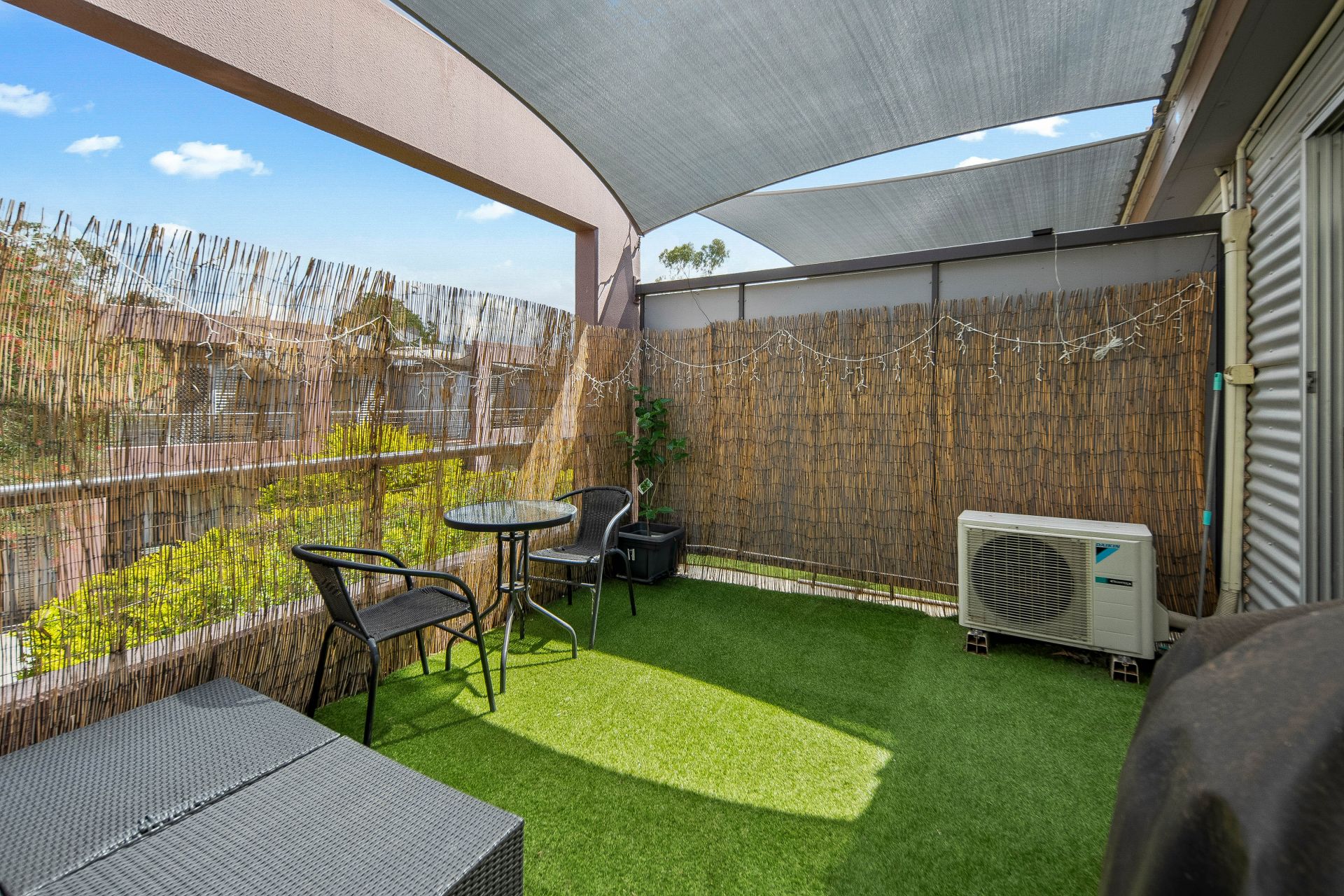 Upstairs, you’ll find two generously sized bedrooms, each featuring built-in robes, carpeted floors, and their own air conditioning units for year-round comfort. The master bedroom boasts a large private balcony, where you can savour breathtaking sunrises – a perfect retreat for morning coffee or evening relaxation.