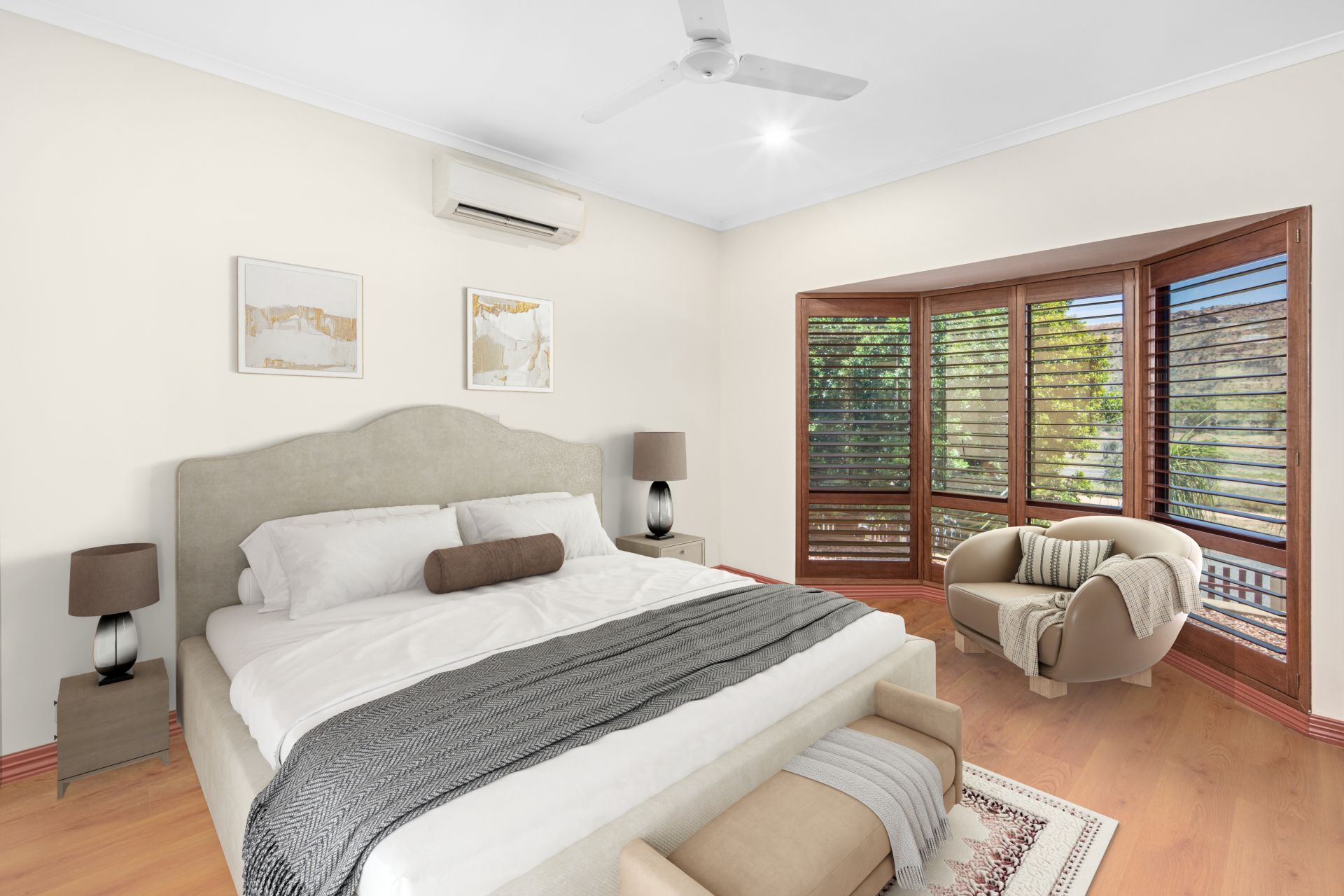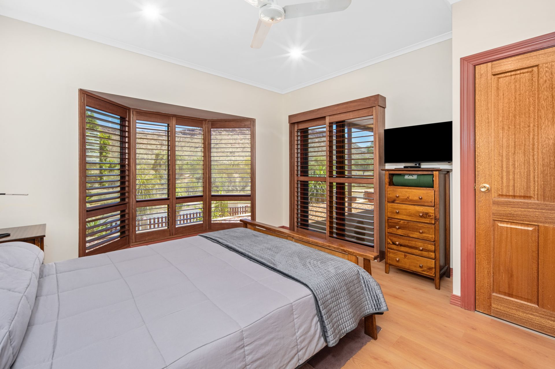 The master suite enjoys direct access to the undercover deck-perfect for morning coffee with a view. It includes a generous walk-in robe and a spacious ensuite with dual vanity, shower and WC. The two additional bedrooms are both oversized with built-in robes and are serviced by a full family bathroom complete with shower, spa bath and a separate WC. There is a study with direct access to the pool area which could easily be converted to a fourth bedroom.