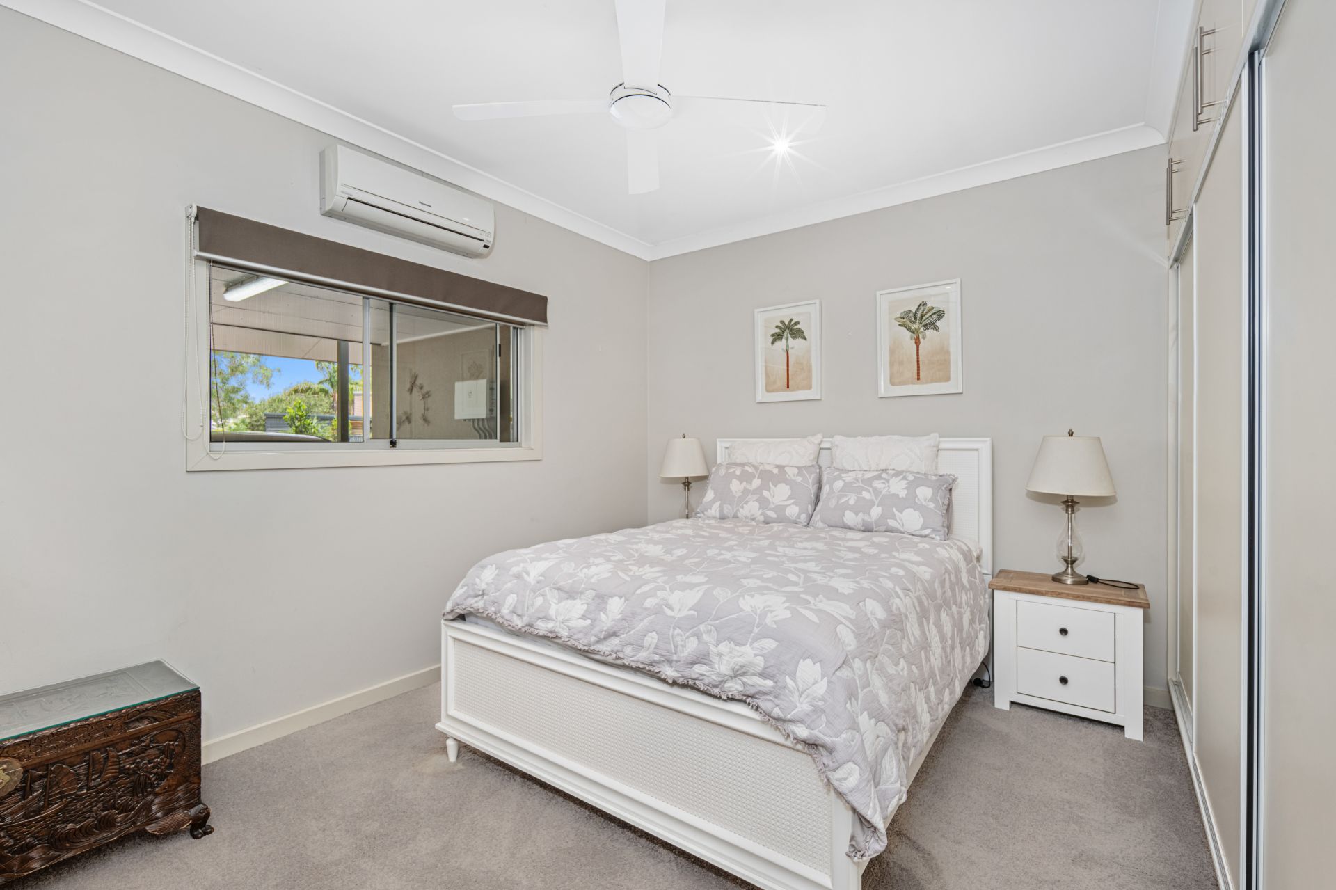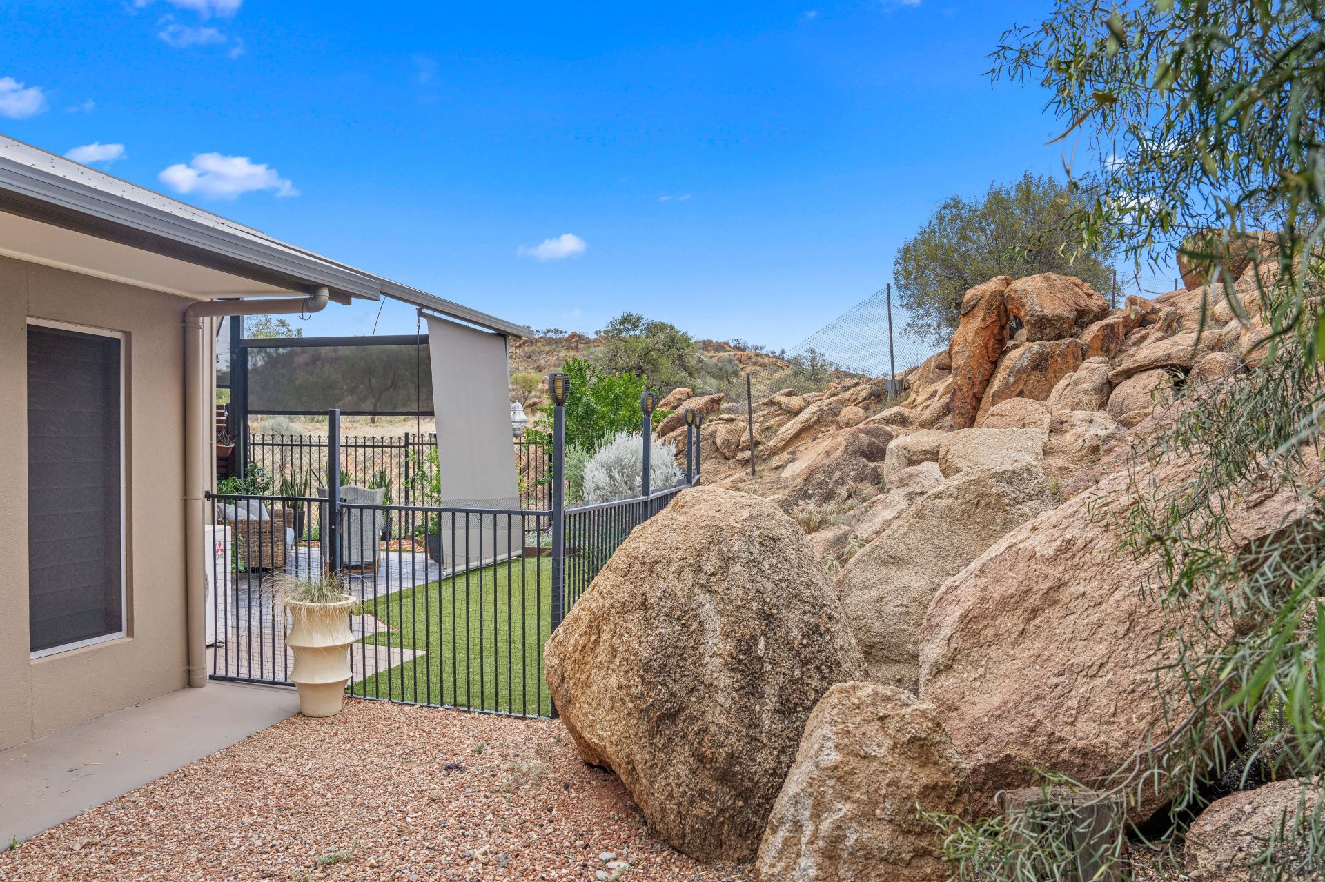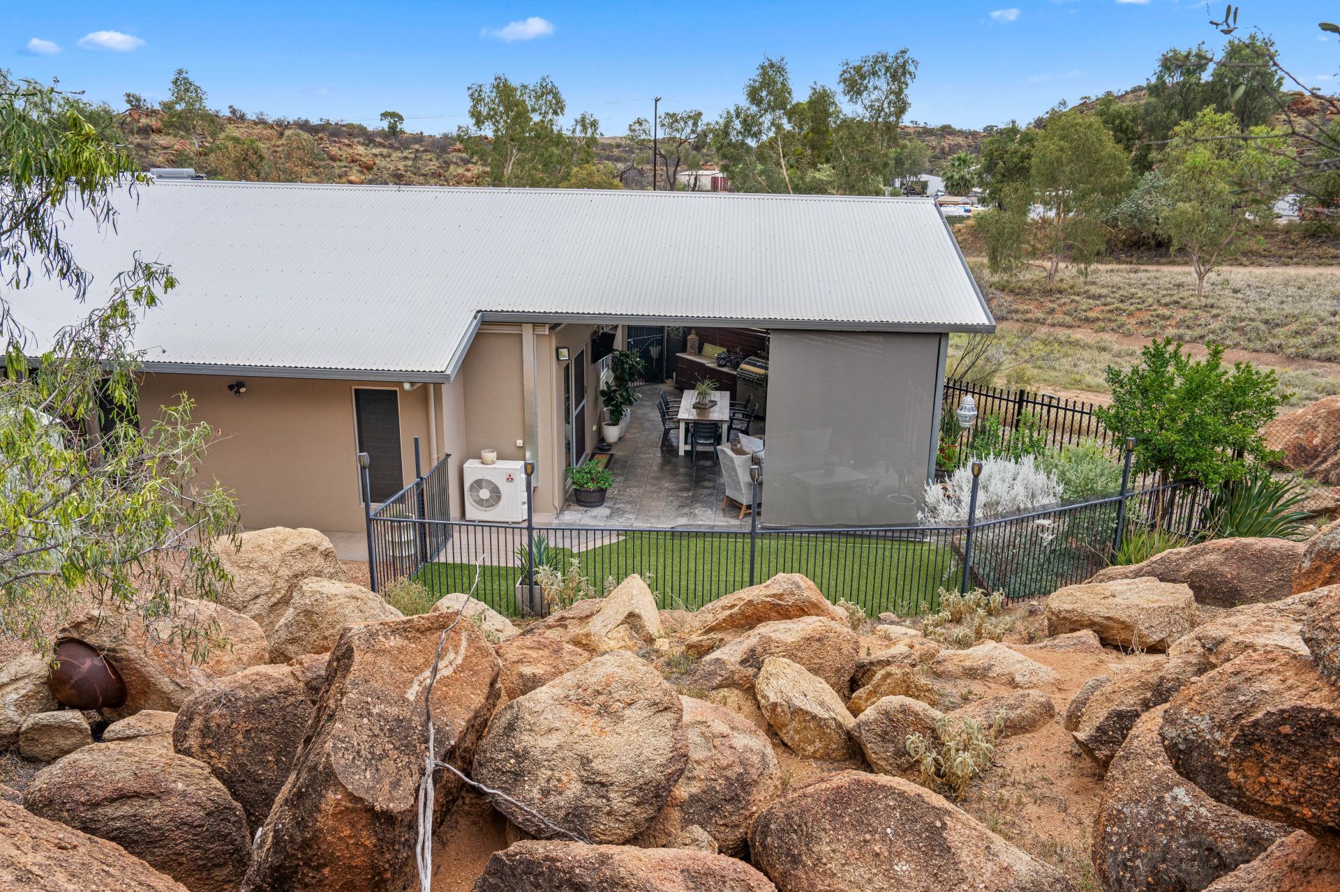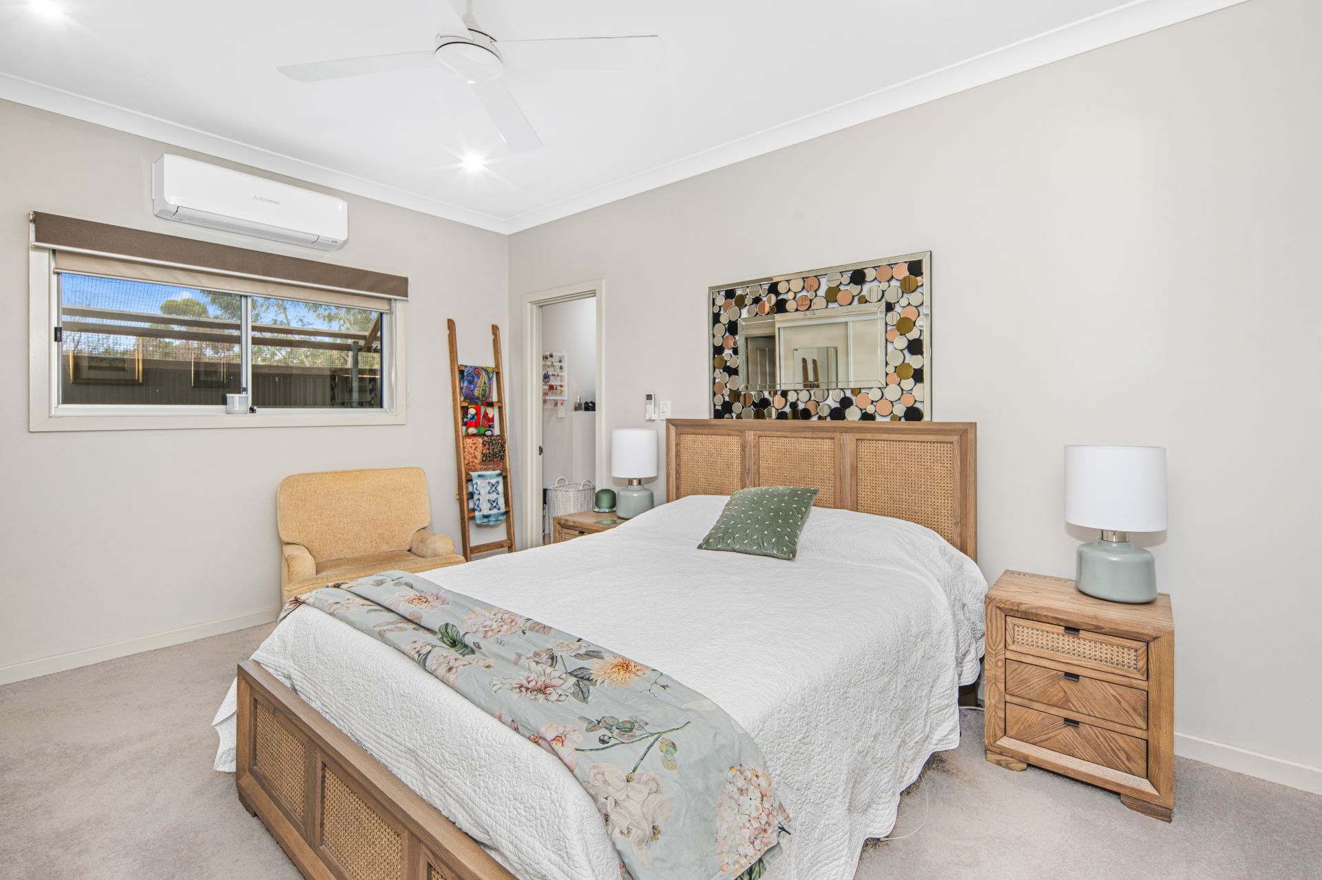 Comfort is assured with split-system air conditioning and ceiling fans throughout. PV solar with two batteries and solar hot water further enhance the home’s energy efficiency.