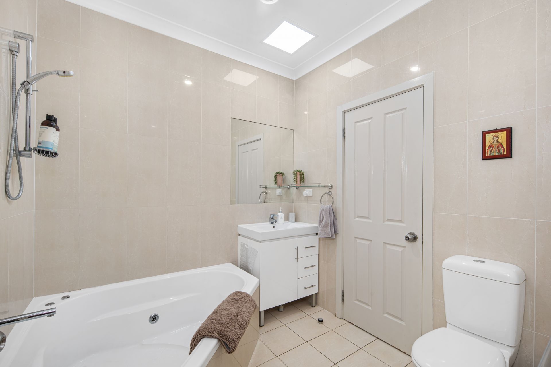 Inside, you will appreciate the quality finishes throughout. All living areas are tiled for easy care, while the three bedrooms feature plush carpet underfoot. The main bedroom includes an ensuite with floor-to-ceiling tiling, a built-in robe and an additional storage nook. The two minor bedrooms are also carpeted and are serviced by a stylish main bathroom complete with a spa bath, separate shower and WC.